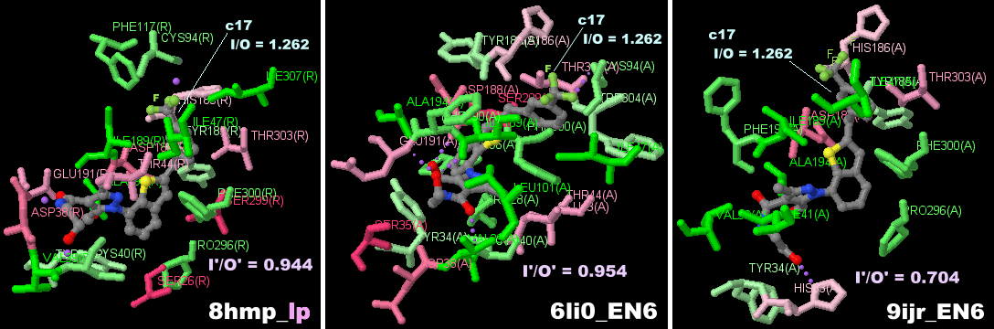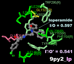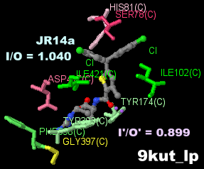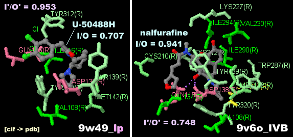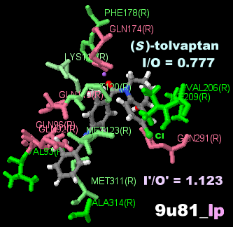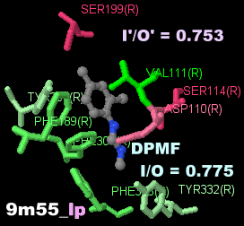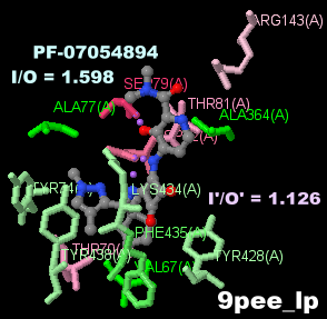PDBsumデータ5a8e_XTK(7-メチルシアノピンドロール結合)と4bvn_P32(シアノピンドロール結合)の比較;○のメチル基のみ異なる