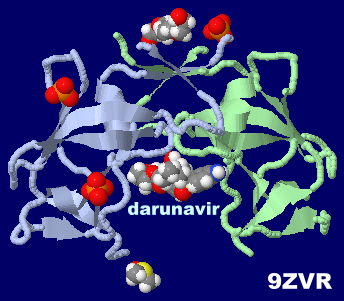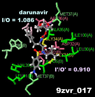 同分子結合HTLV-1プロテアーゼ9zvr(darunavirはA・B座標のAのみ)とPDBsumデータ