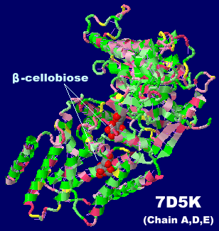 β-セロビオースが結合したセルロース合成酵素7d5kのChain A・D・EとPDBsumデータ,