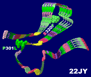 [左]タウタンパク質フィラメント5o3l(アルツハイマー病患者の脳に蓄積;Paired helical filament)