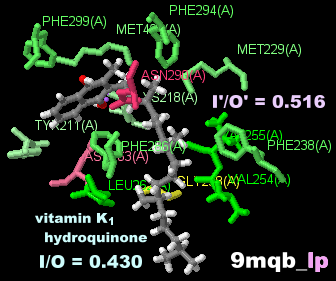 オステオカルシン(osteocalcin)とビタミンK1ヒドロキノンが結合したビタミンK依存性γ-カルボキシラーゼ9mqbとPDBsumデータ