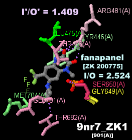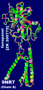 [右]アンタゴニストのファナパネル(fanapanel,ZK 200775)が結合したAMPA受容体 9nr7Chain AとPDBsumデータ