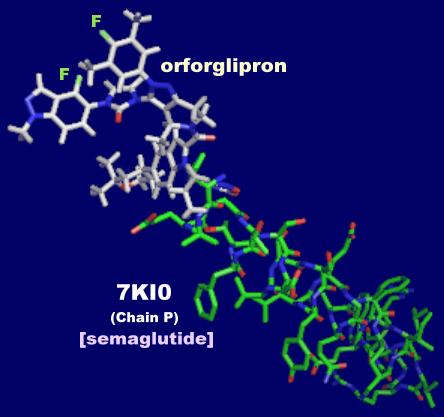 [右]同分子とセマグルチド(GLP-1受容体7ki0のChain P)のPyMOLによる重ね会併せ