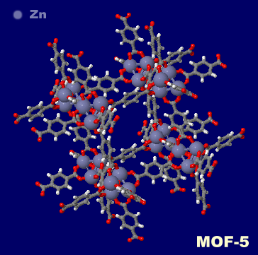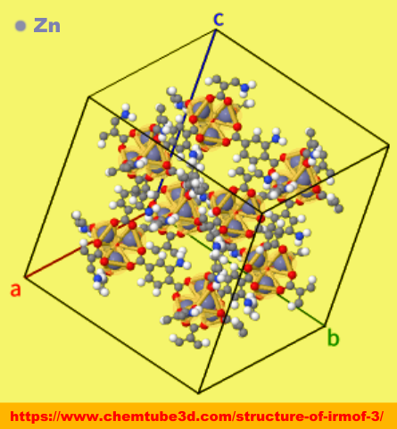 [中・右]MOF構造例(MOF-5;Interactive 3D Chemistry Animations — ChemTube3D掲載データ例)