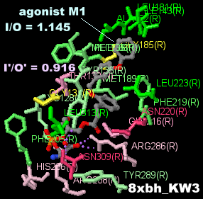 アミロイドイメージング剤18F-AV-45が結合したアミロイドβ8kf1(残基番号9-42;論文未出)とそのPDBsumデータ(18FのI/Oは通常のFで計算)