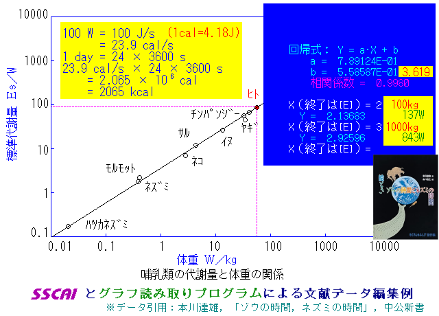 (a) 体重と基礎代謝量 …参考:本川達雄,「ゾウの時間ネズミの時間」,中公新書(1992)