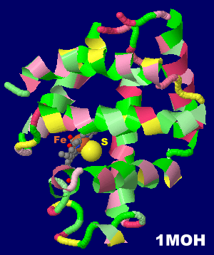 ※参考データ:硫化水素(H2S)結合単量体ヘモグロビンI 1MOH(二枚貝 Phacoides pectinatus 由来) …I/O値順による着色
