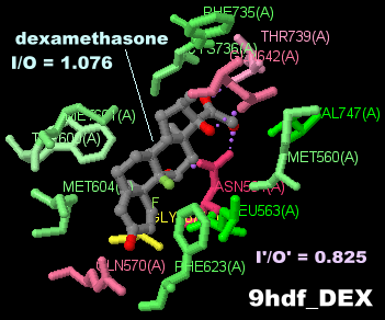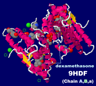 デキサメタゾン(dexamethasone;抗がん剤副作用の軽減・予防)が結合したグルココルチコイド受容体9hdfのChain A・B・aとPDBsumデータ