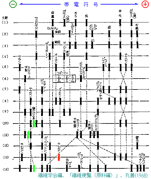 (1)J.C.Wilke,"Disputatio Physica Experimentalis de Electricitatibus Contrariis",Academy of Rostock(1757) (2)P.E.Shaw,Phil.Trans,A217,37(1917) (3)Silsbea,Static Electricity,Natl.Bur.Std.Circ., C438,34(1924) (4)俣野伸次郎,繊維物理学,紡織雑誌社(1945) (5)D.J.Lehmicke,Am.Dyestuff.Rept., 38,853(1949) (6)青木慶一,片倉 穀,森 富治,映画技術(8),16,April(1950) (7)J.W.Ballou,Tex.Res.J., 24,146(1954) (8)S.P.Hersh,D.J.Montgomery,Tex.Res.J., 25,279(1955) (9)G.S.Rose,S.G.Ward,Brit.J.Appl.Phys., 8,121(1957) (10)北川徹三,火災,7,146(1958) (11)竹中治夫,荻野孝也,高化,15,218(19飴)・ (12)E.Fukada,J.F.Fowler,Nature,181,693(1958) (13)佐々木寛治,伴 菊夫,繊学誌,19,379(1餌3) (14)竹中治夫,上野 弥,Plastic Age,10(6),53(1964) 引用文献 繊維学会編,「繊維便覧(原料編)」,丸善(1968) 土田英俊,篠原 巧,高分子,16,347(1967)